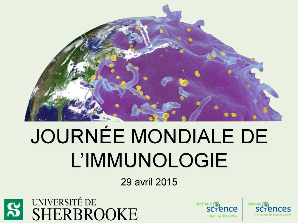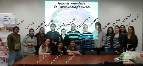 Si l’immunologie vous intéresse et que vous souhaitez vous impliquer dans la 4e édition de la Journée mondiale de l'immunologie (29 avril 2016), vous êtes invité à contacter Fanny Lapointe, Thomas Mayer ou Daniel Serrano, étudiants au Doctorat en immunologie.