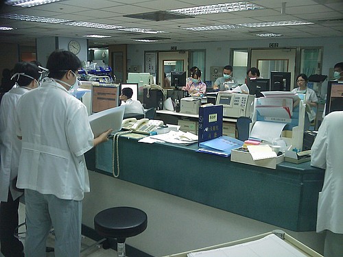 J'ai fait mon stage à l'urgence du National Taiwan University Hospital. L'hôpital de 4000 employés dessert 2000 patients hospitalisés et près de 8000 patients externes, ce qui en fait la plus grande université au pays. L'urgence ressemble typiquement aux urgences occidentales. Panoplie de personnes avec chacune un rôle incompréhensible à mon regard, vitesse, pollution sonore : tous les ingrédients sont réunis pour faire une bonne urgence. L'efficacité du département est remarquable : les patients sont vus presque instantanément. Mes collègues asiatiques sont stupéfaits lorsque je leur explique qu'au Québec, il est normal d'attendre une dizaine d'heures à l'urgence.