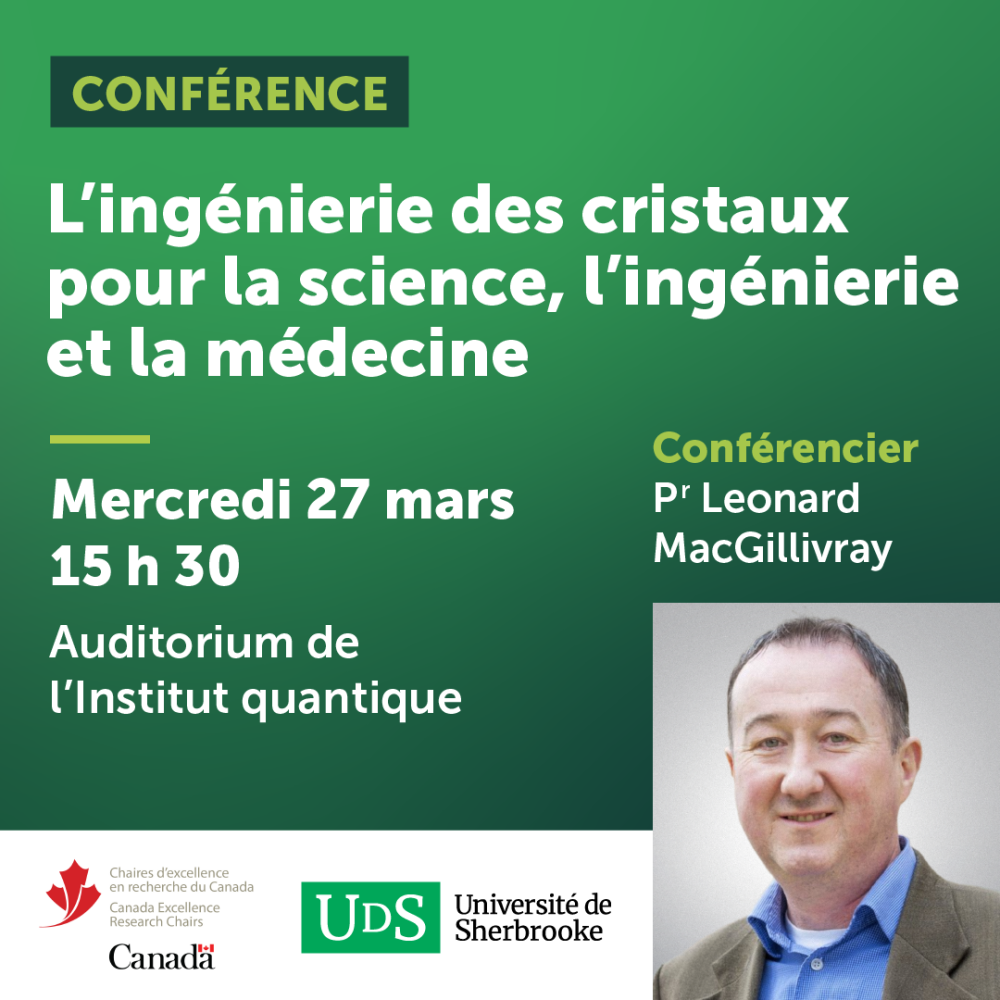 Titulaire de la Chaire d’excellence en recherche du Canada en ingénierie des cristaux pour la chimie verte et les matériaux durables, le professeur Leonard MacGillivray présentera les travaux de recherche et les innovations qu’ils apporteront de façon accessible à l’ensemble de la communauté universitaire.