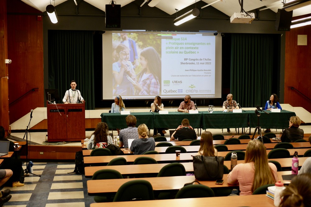 La Chaire de recherche sur l'éducation en plein air à tenu un premier colloque en mode hybride dans le cadre du 89e congrès de l'Acfas. Au total, ce sont plus de 130 personnes praticiennes, étudiantes, formatrices et chercheuses de tous horizons qui ont participé à l'événement. L'équipe a présenté les résultats de recherche d'une vaste étude qui visait à faire le portrait des pratiques enseignantes en plein air en contexte scolaire au Québec. Puis, douze personnes étudiantes de plusieurs universités ont présenté leur projet de maitrise ou de doctorat lors d'une séance de présentations par affiche. Nous remercions vivement toutes les personnes présentes pour leur participation exceptionnelle!