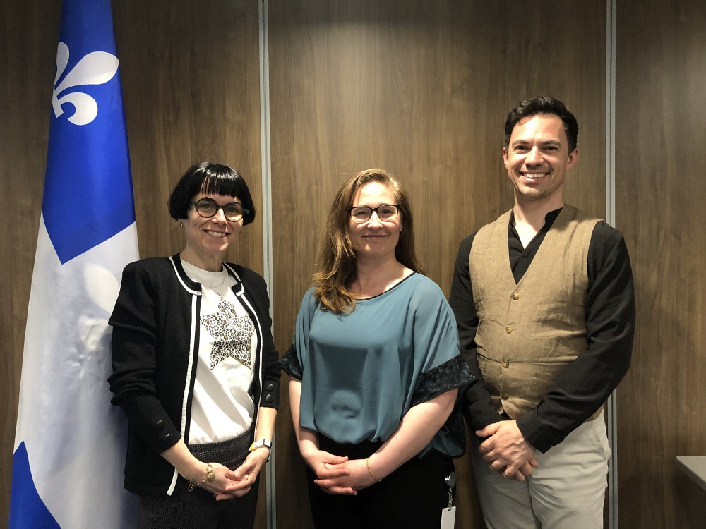 Sur la photo, Caroline et Jean-Philippe sont accompagnés de Annie Robitaille, conseillère en activités physiques, secteur Loisir et Sport, du ministère de l’Éducation du Québec.