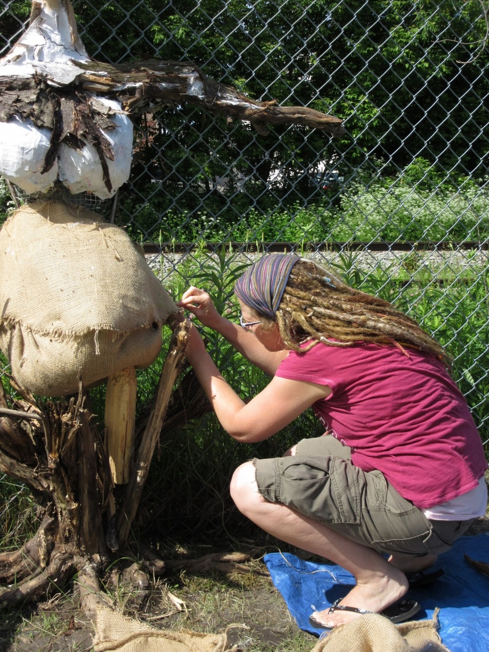 C’est toute une expérience professionnelle de création qu’ont vécue quatre étudiants du certificat en arts visuels dans le cadre de la 8e édition des Jardins réinventés de la Saint-François. Sylvie Lavoie, Marlène Libanus, Xavier Miville-Deschênes et Lucie Trahan ont ainsi réalisé une installation intitulée Pimihlôsek, entièrement faite de matériaux naturels, qui sera exposée au parc de la Rive de Brompton jusqu’au 16 août 2015.