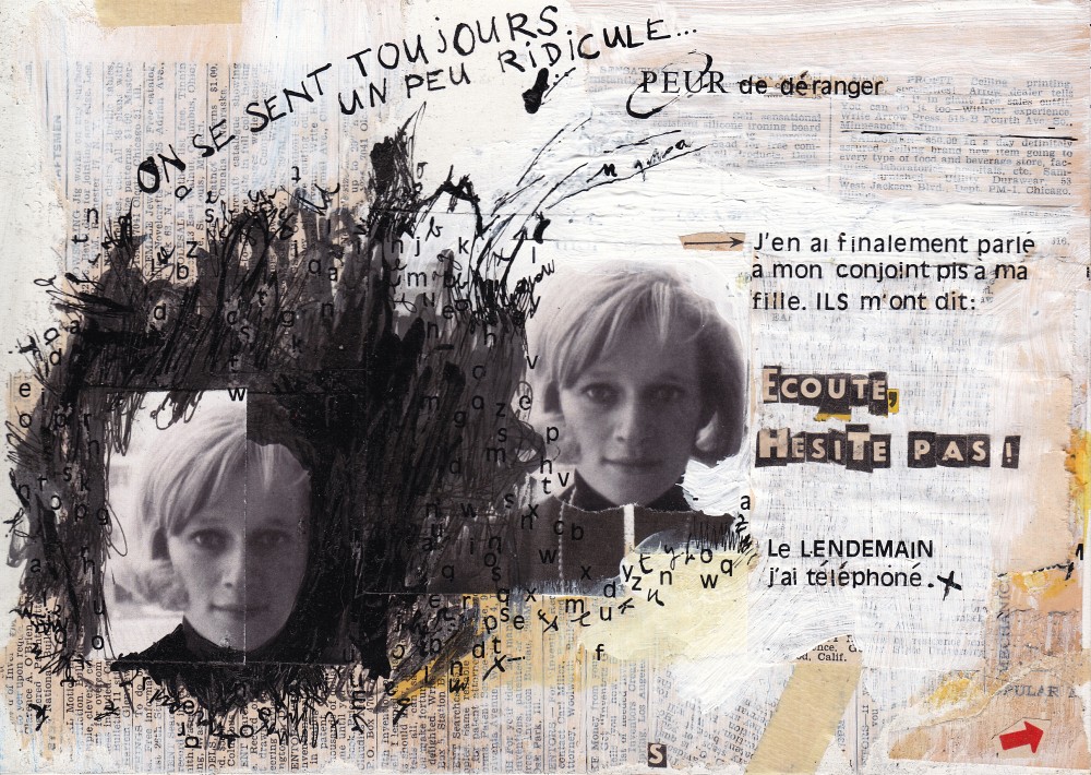 « J’ai choisi d’utiliser le collage car ça correspond bien à l’état d’esprit dans lequel beaucoup de patients ont dit se trouver, explique l’artiste. Plusieurs des personnes interviewées lors de l'enquête ont évoqué un temps de confusion et de crainte, une sorte de brouillard rempli de doutes et de tergiversations. »