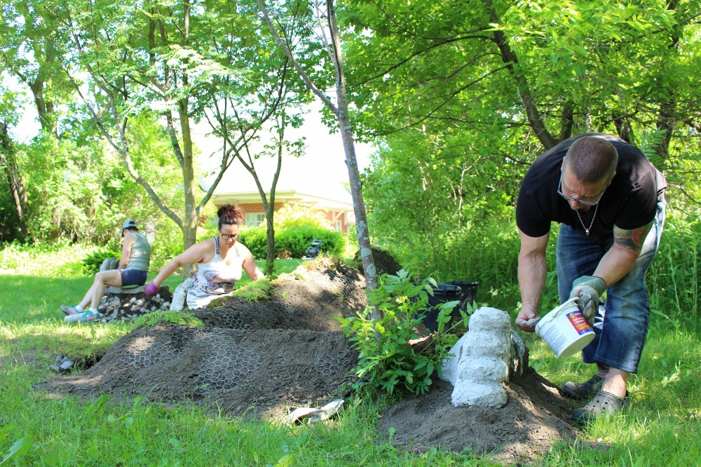 Karine Pinsince, Liette Beloin, Audrey Guy et Sylvain Bourque, tous inscrits au certificat en arts visuels de l'Université de Sherbrooke, ont réalisé l'oeuvre éphémère Réminiscence pour l'édition 2017 des Jardins réinventés de la Saint-François, qui se tiendra du 2 juillet au 27 août à la Maison des arts et de la culture de Brompton.