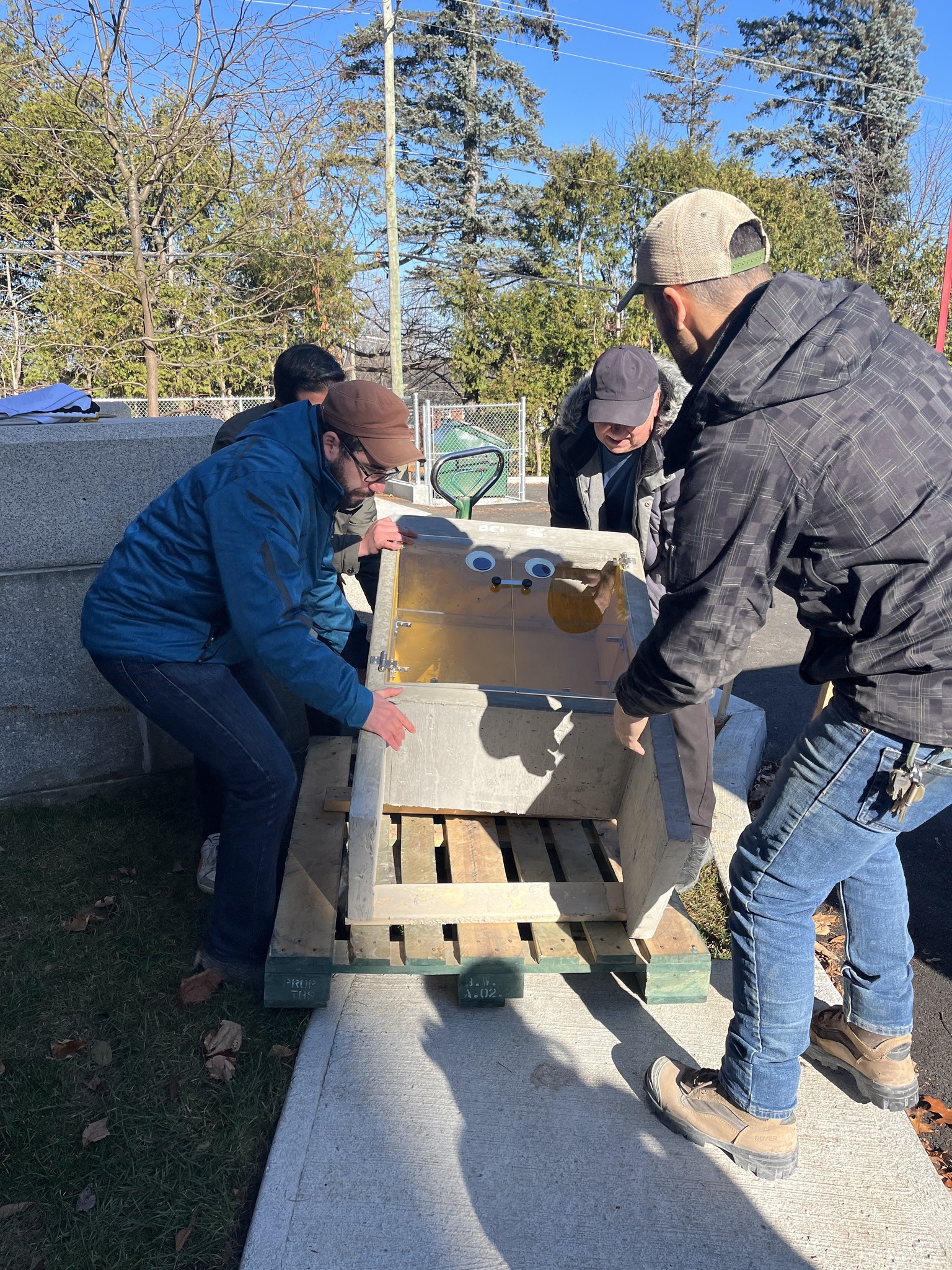 ACI-Sherbrooke a commencé le projet en dessinant des croquis de croque-livre avec les dimensions adaptées à son utilisation future. En juin 2019, les membres de ce groupe technique ont fabriqué un coffrage aux formes simples et adaptées au coulage avec du béton. Puis, ils ont procédé au coulage juste avant le début de la pandémie de COVID, soit en mars 2020. « Ousmane a développé la formulation du béton écologique à haute performance, son sujet d’études doctorales. De notre côté, nous avons préparé les armatures et effectué des tests de coulage. Lors de notre deuxième tentative, nous avons obtenu le résultat escompté », résume fièrement Aghiles Begriche, étudiant au doctorat en génie civil à l’UdeS.