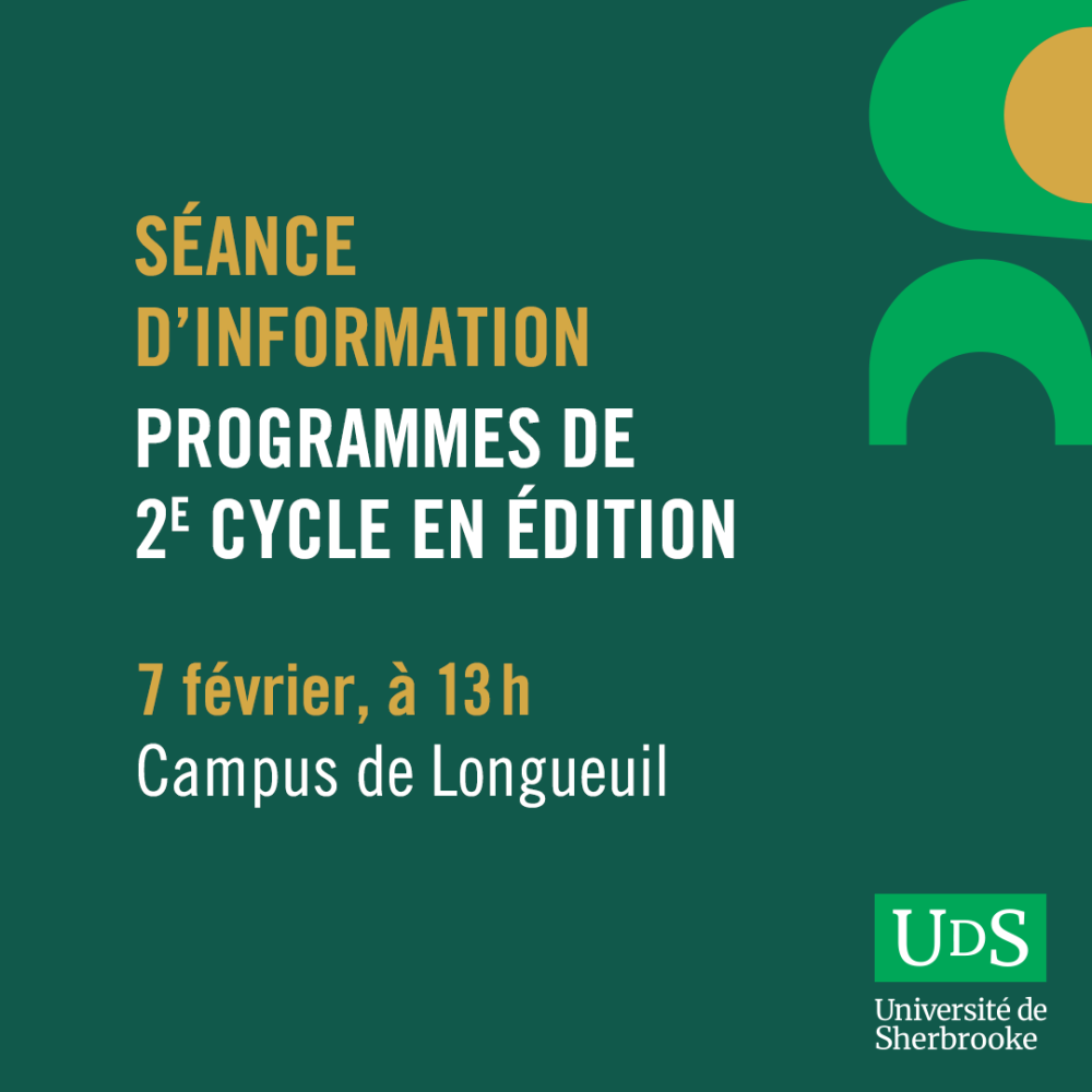 La séance d'information présentera la structure et le fonctionnement des programmes en édition de l'Université de Sherbrooke (le microprogramme et le diplôme d'études supérieures spécialisées ainsi que les activités d'intégration), qui sont les seuls cursus professionnalisants de 2e cycle à être proposés pour les milieux de l'édition. Ces programmes d'études sont offerts au Campus de Longueuil.