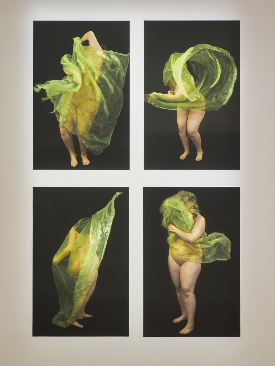 « Je suis une artiste qui est passionnée par l’art action, l’art corporel et la performance. Ce qui m’inspire c’est le rapport entre mon corps, les autres corps et l’environnement. Dans ce projet de performance, j'explore mon corps en l’envisageant comme un matériau destiné à devenir non seulement une œuvre d’art performative, mais aussi une œuvre sculpturale. Les grandes thématiques qui viennent également résonner dans ce projet sont le corps comme symbole d'aliénation et outil de libération. En utilisant le textile, je tente d’effacer le corps sans le perdre totalement. Mon projet s’est réalisé en deux temps : la performance et sa captation photographique et vidéographique mise en scène, ici, dans l’exposition. »