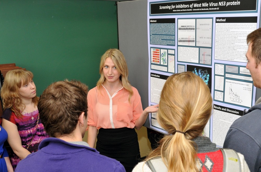 Le 2 novembre dernier se tenait la Journée scientifique du 1er cycle de la Faculté de médecine et des sciences de la santé qui rassemblait 55 stagiaires provenant des programmes de biochimie de la santé, biologie, pharmacologie, physiothérapie, ergothérapie et de certains programmes de l’Université Bishop’s.