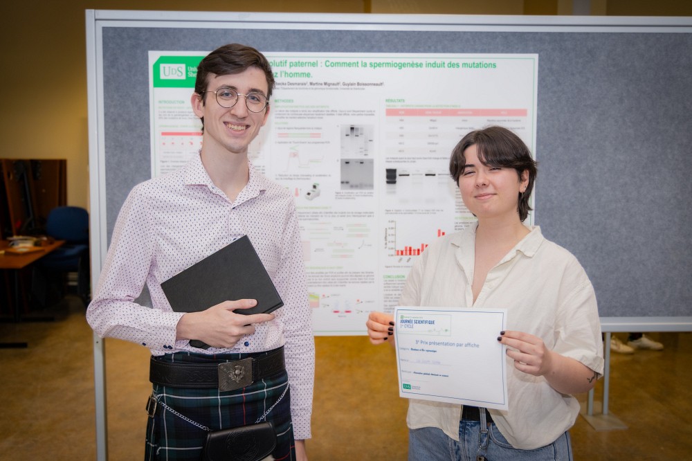 Le 22 septembre dernier s'est tenue la 19e Journée scientifique du 1er cycle à la FMSS. Nous tenons à féliciter nos étudiants du baccalauréat en biochimie de la santé qui ont remporté un prix :