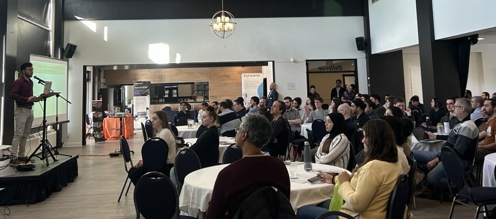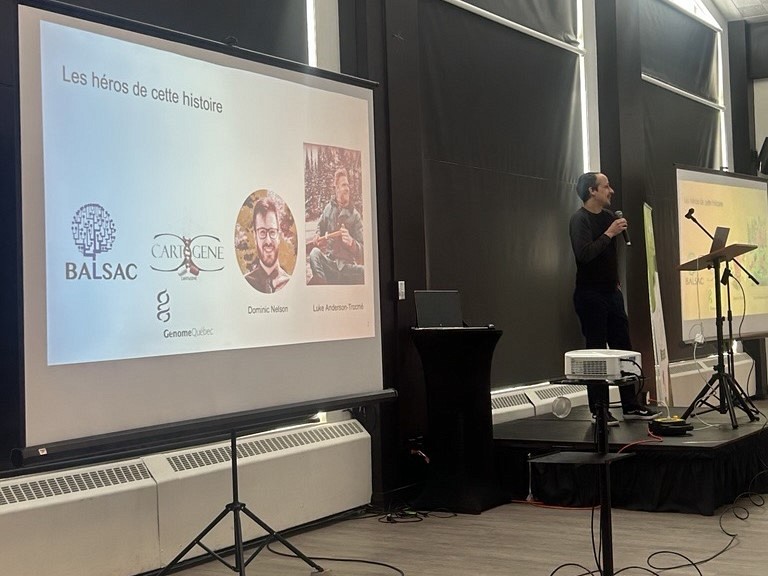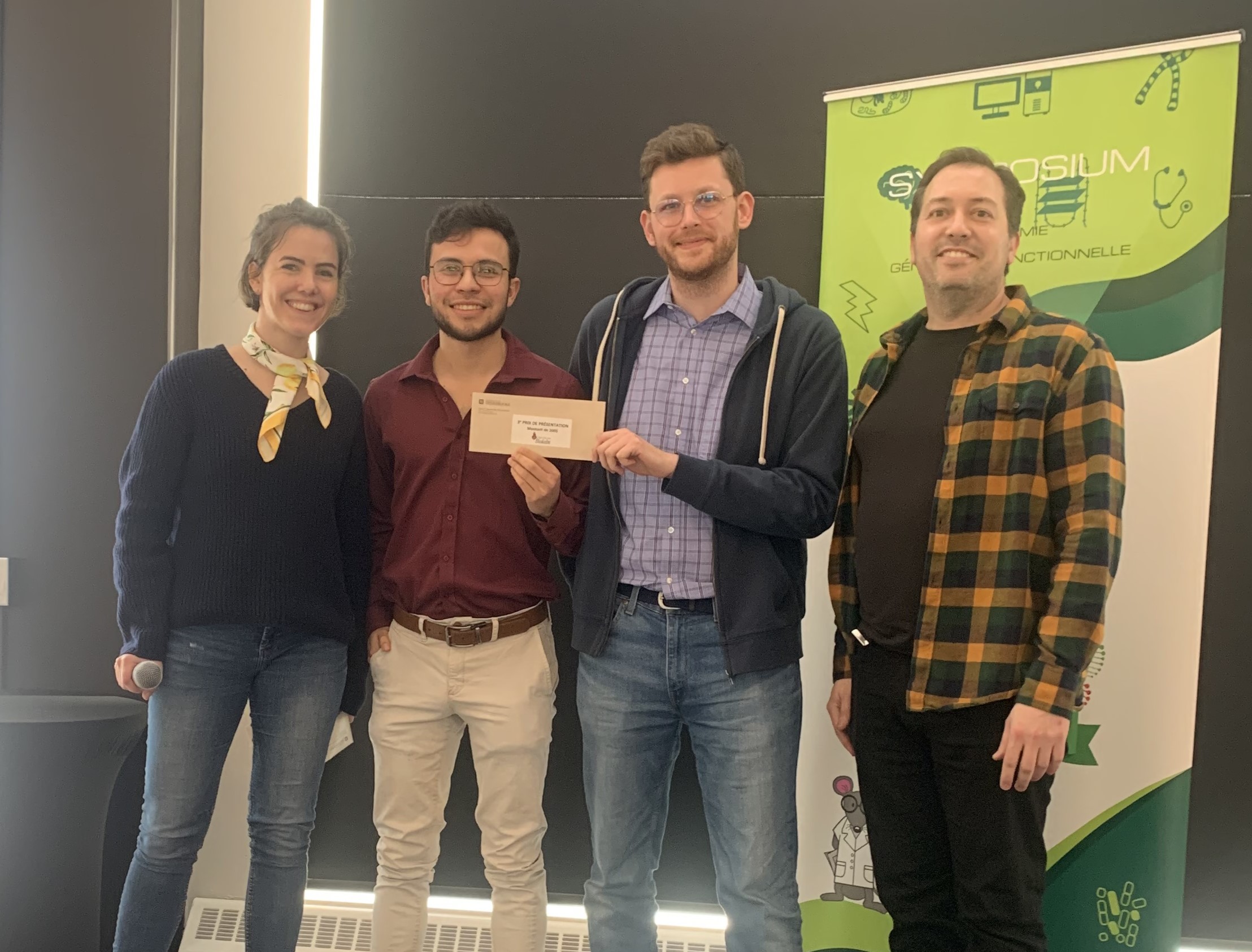 Nous remercions notre conférencier invité, Pr Simon Gravel, professeur au département de génétique humaine à l'Université McGill, pour son excellente conférence sur les gènes, la géographie et généalogie au Québec, ainsi qu'à Mme Léa Kaufmann, récipiendaire du 1er prix de la journée Simon-Pierre Noël en 2024, de l'Université de Montréal qui nous a entretenus sur comment prédire l'activité biologie de composés chimiques sur les cellules cancéreuses grâce au profil d'expression des gènes.