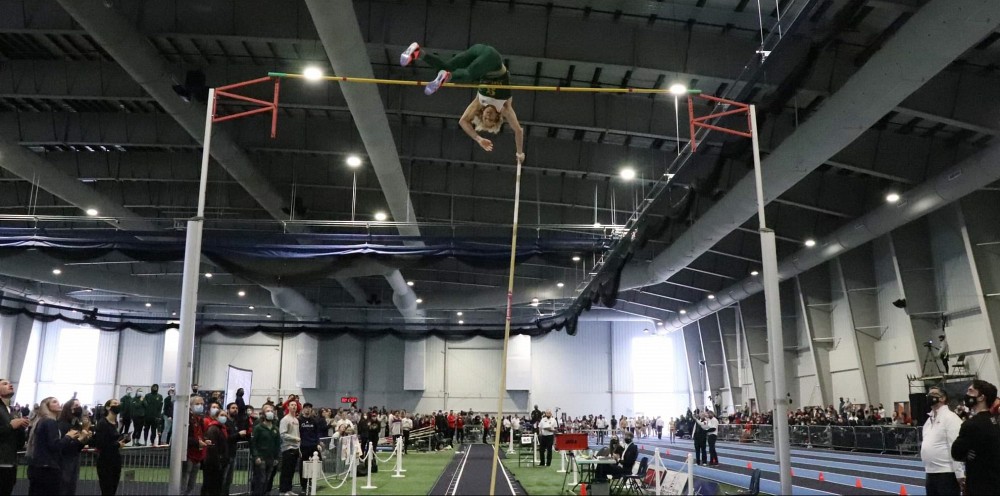 M. Maxime Léveillé, étudiant travaillant et dévoué à sa maîtrise au programme en immunologie dans le laboratoire de la Pre Lee-Hwa Tai, est en plus un jeune athlète très accompli de saut à la perche.