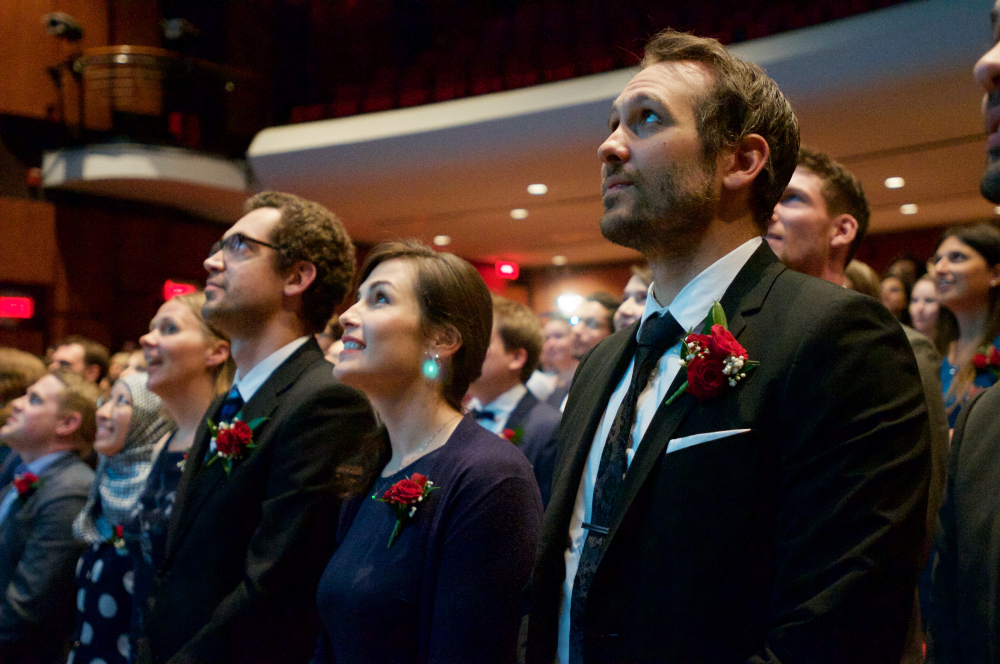 Réunis avec leurs parents et amis ainsi que les membres de la direction de la Faculté, les médecins finissants des programmes de résidence ont prêté le serment professionnel du médecin devant le secrétaire du Collège des médecins, le Dr Yves Robert. Pour la grande majorité, cette cérémonie marque la fin de leurs études et le début de leur pratique professionnelle. D’autres ont choisi de poursuivre leur formation dans des domaines spécialisés.