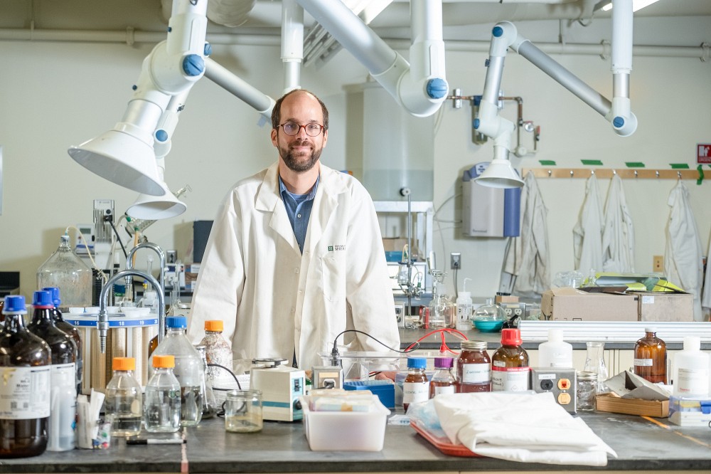 Le professeur Hubert Cabana, également du Département de génie civil et de génie du bâtiment, se spécialise dans le traitement des eaux usées. Ses travaux portent sur l’élimination des contaminants que l’on trouve à l’état de traces dans l’eau, tels que les produits pharmaceutiques, les microplastiques et les cannabinoïdes.