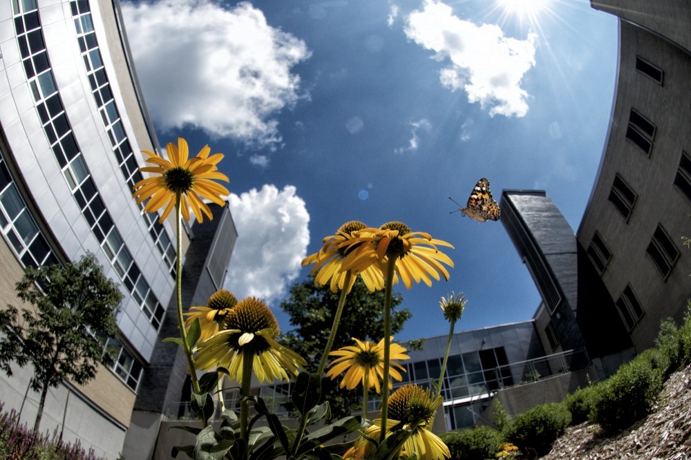 À l’instigation de l’Association générale des étudiants en sciences (AGES) et d’un groupe d’étudiantes et d’étudiants au baccalauréat en écologie, un jardin contenant plus de 800 plantes et arbustes à fleurs vient d’être aménagé devant l’Atrium du Pavillon des sciences de la vie.