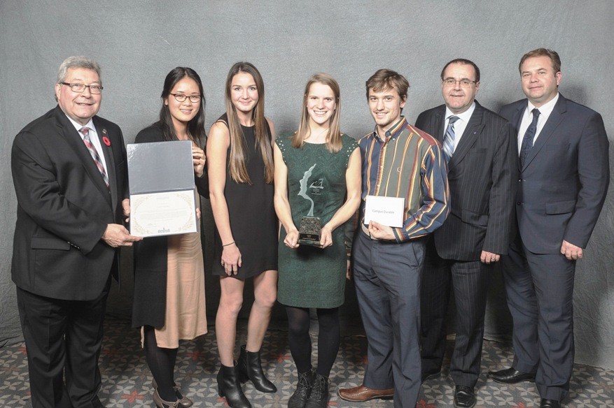 Le groupe étudiant Campus durable a reçu le prix d’excellence dans la catégorie Relève doté d’une bourse de 2000 $ lors du Gala des prix d'excellence en environnement de la Fondation estrienne en environnement (FEE), tenu le 10 novembre à l’Hôtel Delta devant près de 300 personnes réunies pour célébrer les réussites estriennes en environnement et développement durable.