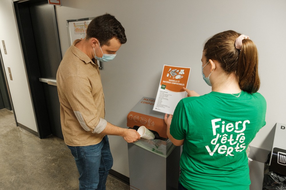 Les initiatives se sont également multipliées sur le plan de la gestion responsable des matières résiduelles (GMR). Parmi les faits saillants se trouve la mise sur pied d’un groupe de quelque 50 personnes ambassadrices GMR, tant du côté du personnel que des étudiantes et étudiants, qui veillent à sensibiliser leurs pairs par rapport aux bonnes pratiques de gestion de tri des matières résiduelles.