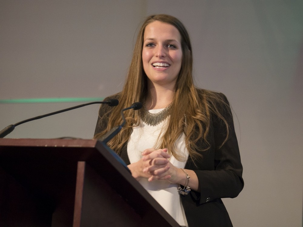 Pour l’occasion, Élise Pilon, étudiante à la maîtrise en administration, concentration marketing et récipiendaire de la bourse du Fonds Produits forestiers Résolu cette année, ainsi que de la bourse du Fonds Yves Bourassa en 2014, est venue livrer un vibrant témoignage quant à l’importance de recevoir une bourse. «Chers donateurs, ce que vous faites en offrant des bourses, c’est tellement plus grand que de donner de l’argent. Parce que lorsqu’on étudie et qu’on donne tout ce qu’on a, vous êtes le résultat le plus inattendu, mais le plus gratifiant qu’on peut obtenir», a-t-elle rappelé.