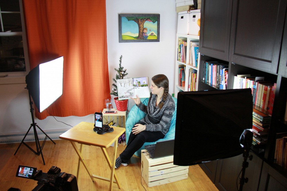 Assise dans son salon en direct sur Facebook, Valérie offre gratuitement un spectacle privé de 10 à 15 minutes. Pas d’effets spéciaux, pas d’animation particulière, pas de déguisement! L’heure du conte met la lecture à l’honneur et donne aux enfants l’envie de lire. L’activité aide également à rendre la littérature jeunesse accessible. Dans le lit avec la tablette, sur la grande télévision, parfois sur l’ordinateur, les familles se connectent le temps d’un court récit. Le livre choisi est annoncé le jeudi, ce qui donne le temps de se le procurer pour le mardi suivant. Valérie montre les pages du livre à l’écran et tout le monde peut suivre. Maintenant partie intégrante de la routine des parents et enfants qui la suivent sur Facebook, l’heure du conte montre aux enfants qu’il y a des auteurs, du « vrai monde » derrière les histoires.