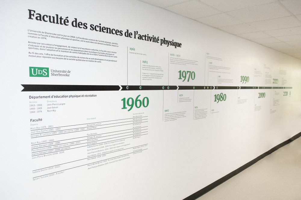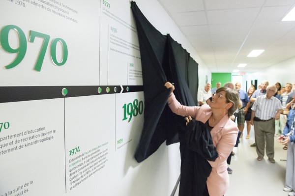 Le 29 juin dernier s'est déroulé le dévoilement de la ligne du temps de la Faculté des sciences de l'activité physique (FASAP). Cette ligne du temps a été créée à la suite de quatre années de rédaction de L'historique de la FEPS-FASAP par plusieurs personnes retraitées ayant fait partie du personnel et du corps professoral de la FASAP. Cet événement a permis de mettre en valeur l’histoire de la faculté, souligner son essor et soutenir son avenir.