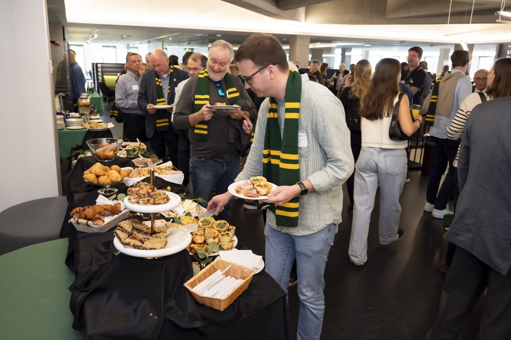 Le samedi 27 octobre, les retrouvailles ont commencé avec la réunion des collègues d’études des promotions 1985, 1995, 2005 et 2015 de l’École de gestion, qui ont célébré sur le campus. Ils ont pu encourager l’équipe de football du Vert & Or de l’Université de Sherbrooke, qui est ressortie victorieuse. Le beau temps étant au rendez-vous, ils ont pu réseauter à l’extérieur avant de redécouvrir les lieux où ils ont étudié.
