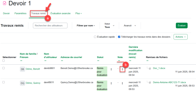 Travaux remis?⚓Évaluer⚓Enregistrerpour sauvegarder l'évaluation ou cliquez surEnregistrer et affiche la suitepour évaluer un.e autre étudiant.e⚓La note est maintenant attribuée et disponible dans le carnet de notes de la personne étudiante.