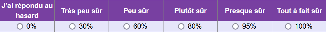Exemple : Vous ne souhaitez pas indiquer votre indice de certitude pour cette question⚓