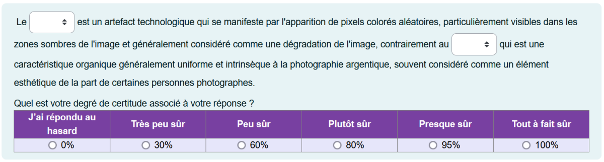 Exemple : À quoi ressemble l'interface de la personne étudiante lors de la passation d'un test avec indice de certitude ?⚓