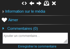 Consulter une galerie dans une collection multimédiaPrérequisAvoir créé une Collection multimédiaProcédureAccédez à la Collection multimédia préalablement créée ⚓Cliquez sur une galerie⚓Cliquez sur une image (élément)⚓RésultatUne fois que l'image s'affiche, vous avez plusieurs options :Activer la barre de navigation latéraleNaviguer entre les images par les boutons Suivant et PrécédentTélécharger l'imageFermer la fenêtre de visualisationInformation sur l'imageAttribuer la mention AimerRédiger un commentaire