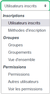 Créer un GroupementPrérequisTruc & astuce : Pour une bonne pratique, il est préférable d'avoir, dans un premier temps, créé des groupes.ProcédureCliquez sur Participants dans la barre de navigation du cours[1]⚓Cliquez sur Groupements dans le Menu de navigation Participants[2]⚓Cliquez sur Créer un groupement⚓Saisissez le Nom du groupement⚓Cliquez sur Enregistrer⚓Cliquez sur Afficher les groupes du groupement⚓Sélectionnez les groupes, puis cliquez sur Ajouter⚓Cliquez sur Retour aux groupements pour terminer l'opération⚓Répétez les étapes pour créer davantage de groupement