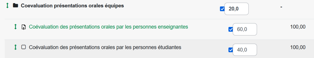 J'ai nommé cette catégorie Coevaluation présentations orales équipes.