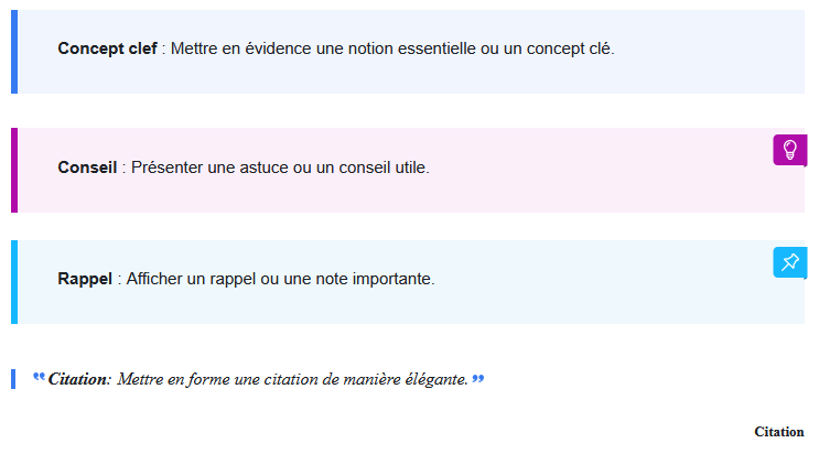 Concept clef : Mettre en évidence une notion essentielle ou un concept clé.