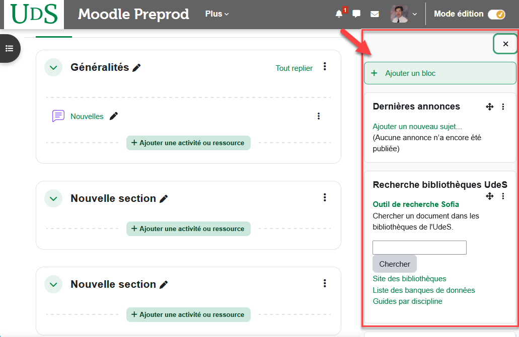 L'activation du mode édition est confirmée par cette forme
