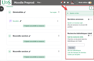 | Atelier (en mode autoévaluation) Base de données Feedback Forum privé Journal Journal personnel |
