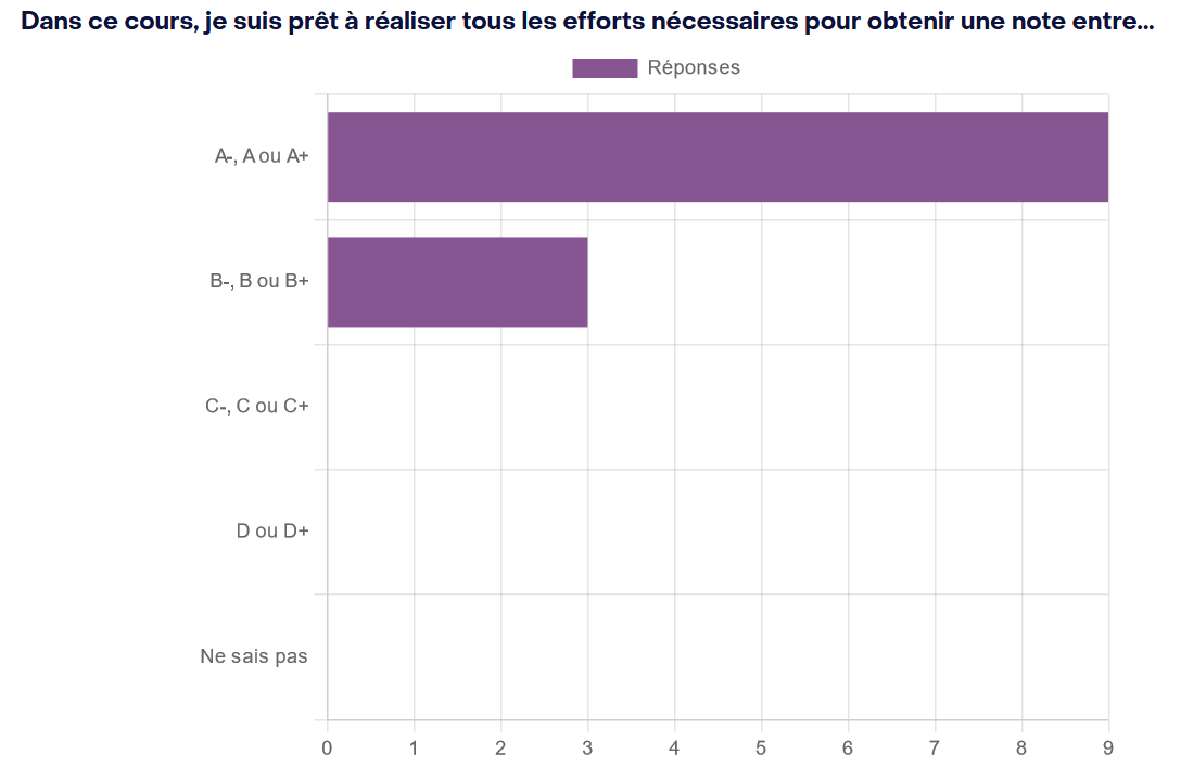Lors de la présentation des résultats, je tente d'établir des liens entre les réponses des deux premières questions et les activités du cours.