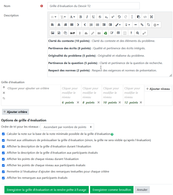 Enregistrer la grille d'évaluation et la rendre prête à l'usage⚓
