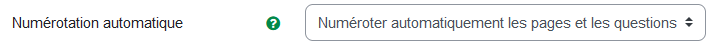 Numérotation automatique : détermine si les questions ou les pages seront automatiquement numérotées.⚓ - Numérotation automatique des pages et des questions (par défaut) : les pages et les questions sont numérotées automatiquement.