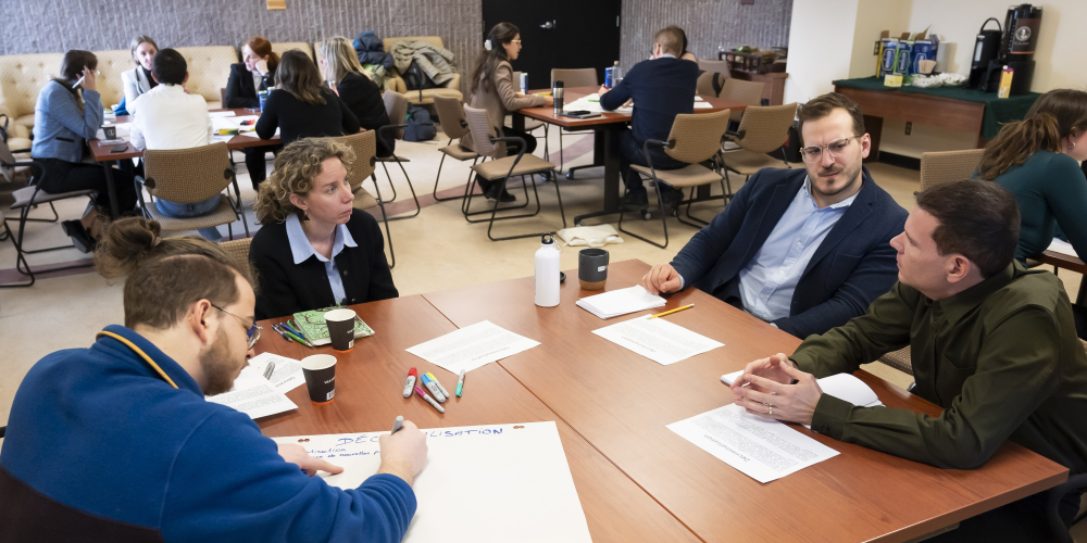 Fait intéressant, l’après-midi du 29 février a été consacré à un atelier de discussion en petits groupes (de style World Café) au cours duquel les personnes participantes ont eu l’occasion de partager leurs connaissances et leurs idées sur les différents thèmes abordés en matinée.