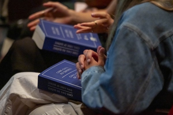 Encore une fois, la Chambre des notaires a saisi l’occasion pour rencontrer les futures et futurs juristes, présenter la profession notariale et distribuer un tout premier code civil à chacune et chacun des membres de la nouvelle cohorte.