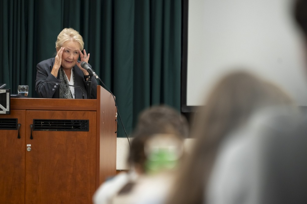 D’entrée de jeu, suivant une présentation du professeur Guillaume Rousseau, directeur des programmes en DPAE, qui a d’ailleurs eu le plaisir de collaborer avec elle par le passé, Pauline Marois a souligné à quel point elle était contente de l’invitation. Il faut savoir que l’éducation revêt pour elle un statut particulier, puisqu’elle a non seulement agi comme ministre de l’Éducation, mais qu’elle est également devenue chancelière de l’Université du Québec à Montréal après sa carrière politique.