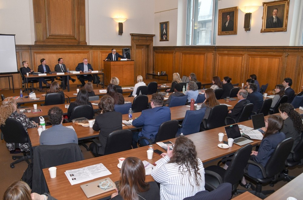Pour clore la journée, l’honorable Benoît Moore, juge à la Cour d'appel et président d'honneur du colloque, a livré un « Libre propos sur le contrat vidé de son contenu ».
