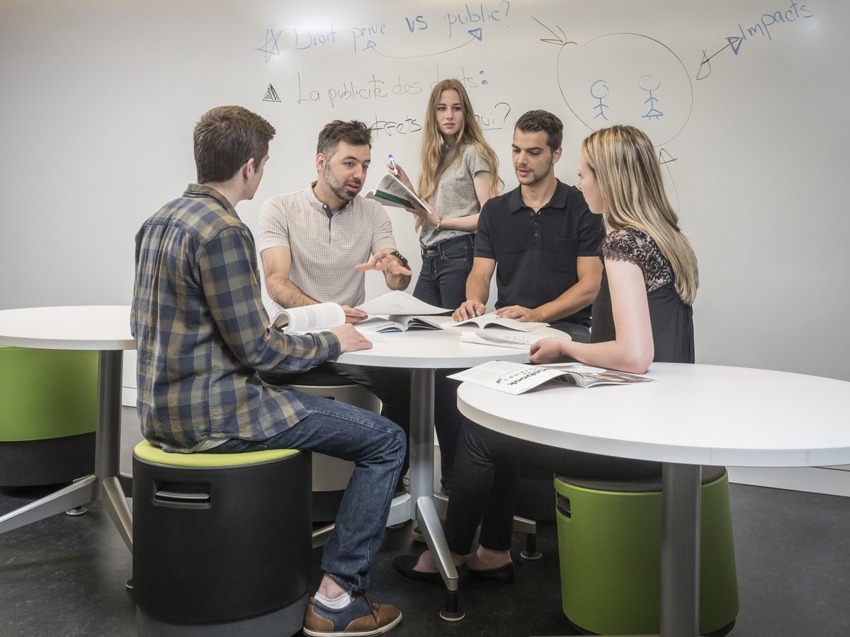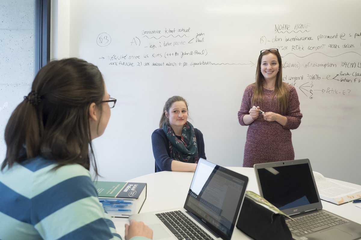 L’apprentissage du droit ne se fait plus nécessairement de la même façon qu’à l’époque. La pratique elle-même a évolué. Les méthodes pédagogiques font donc davantage place à la collaboration, à l’échange et à la collégialité. Munis de murs inscriptibles et répartis sur le pourtour du 3e étage, les locaux de travail collaboratif répondent maintenant aux besoins de la communauté facultaire.