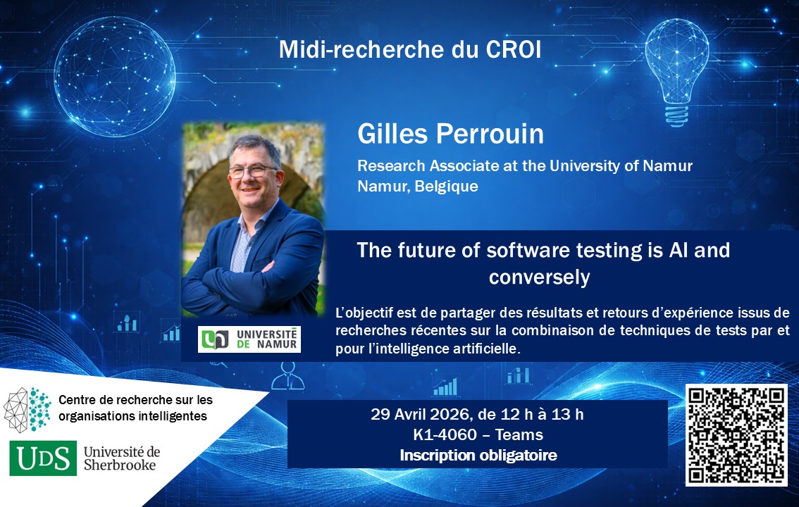 Le Centre de recherche sur les organisations intelligentes (CROI) a le plaisir d’accueillir le professeur Gilles Perrouin, Research Associate à l’Université de Namur (Belgique).