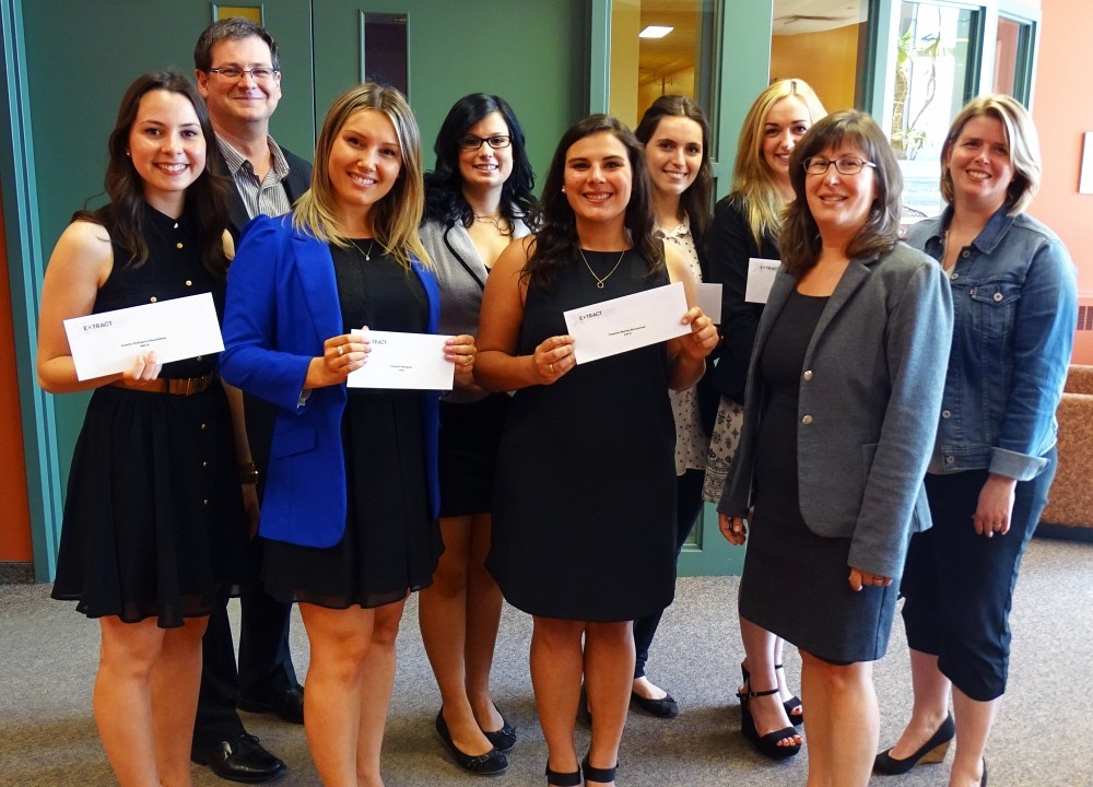 Laurie Dallaire Charlebois, Kassandra Payeur-Blais, Cécile Pauthe, Jessy Pringault, Vanessa Martin-St-Laurent et Chanelle Mongeon, toutes étudiantes à la Maîtrise en administration concentration marketing à la Faculté d’administration de l’UdeS, sont les heureuses récipiendaires des bourses offertes par la firme sherbrookoise Extract recherche marketing. Totalisant 1 000 $, ces bourses d’études récompensaient les meilleures offres de service élaborées dans le cadre d’un cours à la maîtrise à la session d’hiver 2015.