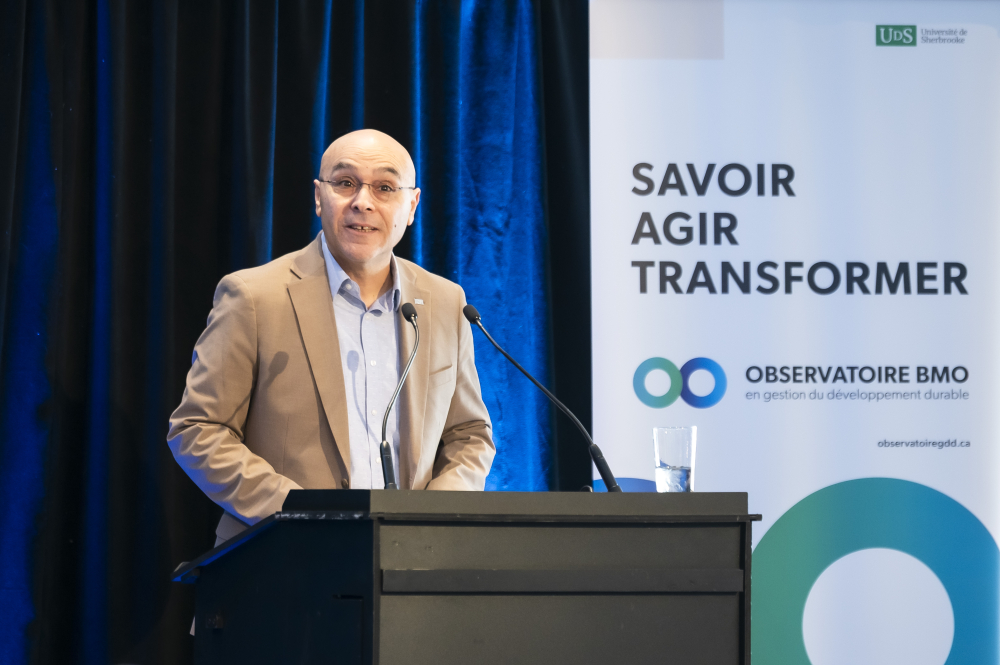 Le doyen a également souligné que la création de l’Observatoire BMO en gestion du développement durable en 2024 et le lancement de son premier livre blanc un peu plus d’un an plus tard sont des initiatives qui s’inscrivent dans un long parcours d’engagement et de recherche consacré à la gestion du développement durable à l’École de gestion de l’Université de Sherbrooke.