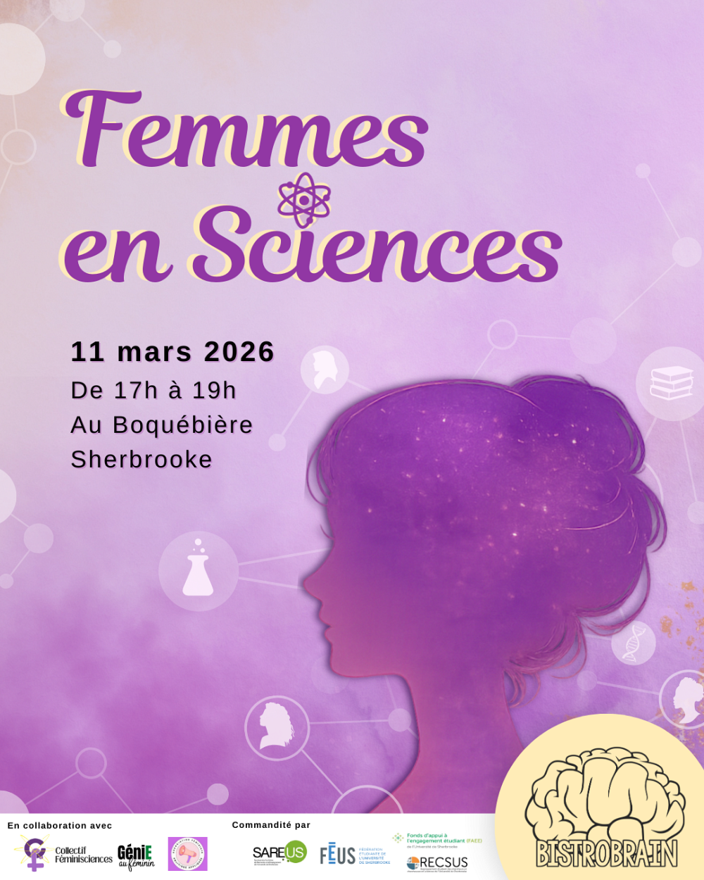 BistroBrain vous invite le 11 mars prochain au Boquébière pour une soirée des plus inspirantes sous la thématique Femmes en Sciences!