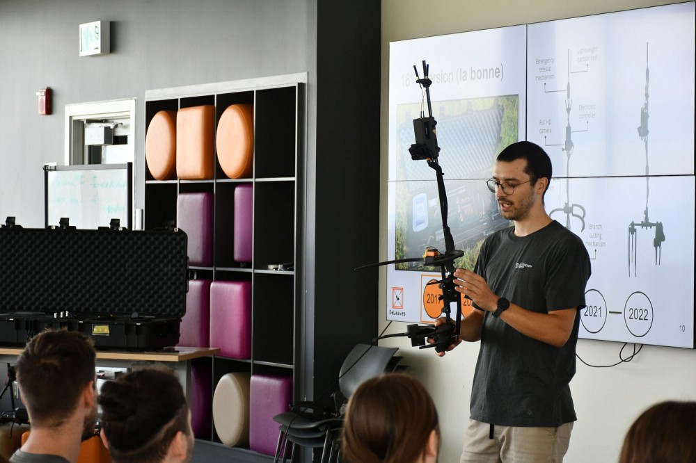 Dans le but d’initier des personnes étudiantes de première année au baccalauréat en génie mécanique, la professeure à la Faculté de génie et à l’École de gestion Valérie Grandbois a invité sa classe afin que celle-ci comprenne les tenants et aboutissants de l’entrepreneuriat technologique.