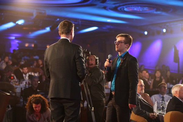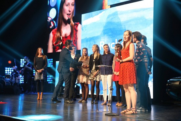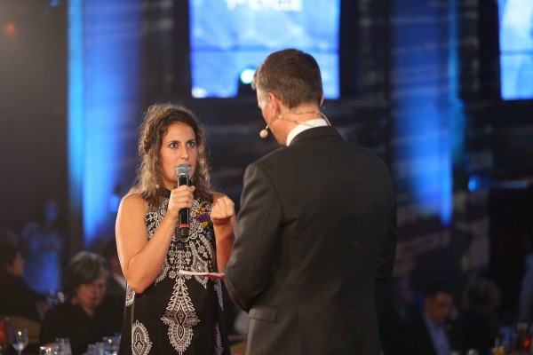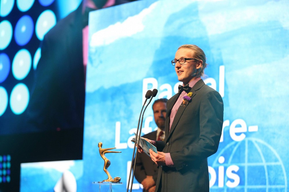 Ruche Campus fait la promotion de l’apiculture en milieu urbain auprès de la communauté universitaire, des recherches en développement durable afin de former les scientifiques de demain et l’éducation de jeunes entre 5 et 16 ans sur l’importance des pollinisateurs. Avec ses 60 membres bénévoles, Ruche Campus participe entre autres à un projet de gestion de la migration des éléphants en Afrique à l’aide de ruches. Ce projet vise à amener une source de revenus aux villageois tout en protégeant leurs récoltes des éléphants. Les membres du groupe ont invité les deux autres finalistes dans leur catégorie à monter sur scène avec eux pour leurs remerciements « Parce qu’en fin de compte, c’est l’environnement qui gagne et c’est très important pour nous! » a indiqué Ève Courtois, étudiante en biologie.