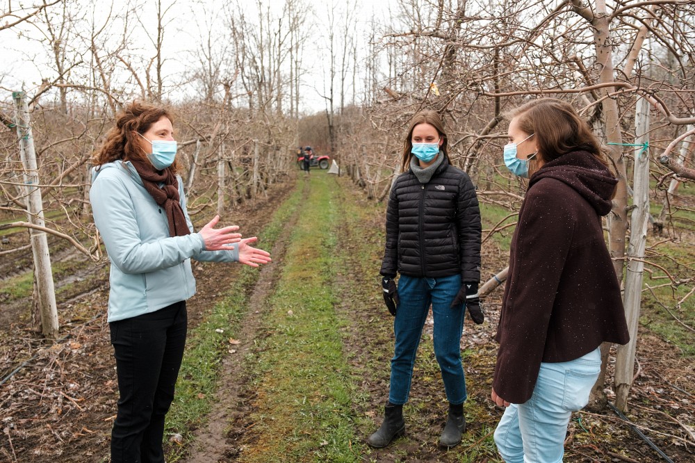 La professeure Marie-Eve Major s’intéresse à la santé des travailleuses et travailleurs saisonniers, tout comme Audrey Goupil, étudiante à la maîtrise en sciences de l'activité physique (cheminement en neuromécanique et ergonomie), et Hélène Clabault, professionnelle de recherche, lesquelles collaborent à ses travaux.