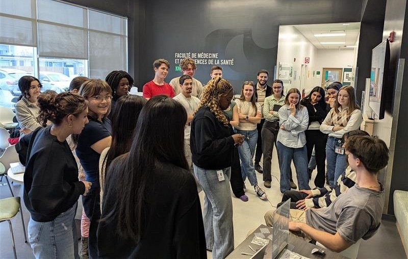 Au pavillon Jean-Marc-Lepage, les personnes étudiantes en médecine ont tenu une séance d’échanges intitulée Brisons les tabous : parlons de la santé des femmes. Il y a eu une grande participation de la cohorte de médecine; beaucoup d’hommes curieux ont testé l’expérience immersive de la simulation de contractions.