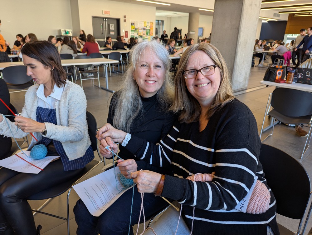 L'atelier Tricoté serré a rencontré un réel succès, affichant complet avec ses 15 places disponibles. Des membres du personnel et des étudiantes s’étaient réunis pour apprendre et partager un moment chaleureux, mais surtout pour tricoter des petits bonnets qui seraient remis à des nouveau-nés.